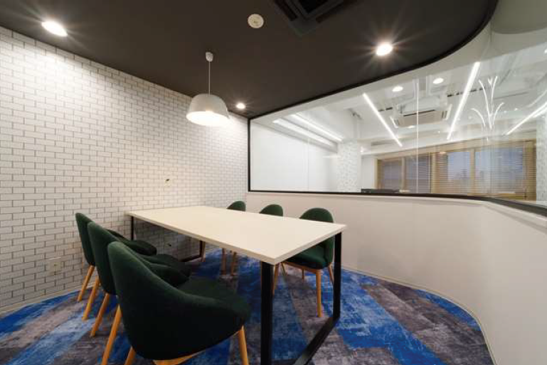 会議室と受付台が設置済みのセットアップオフィス。什器付きも相談。