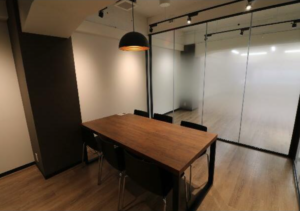このエリアの内装付き賃貸オフィス、10名用と6名用の個室会議室が設置済み。