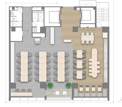 機能性やデザイン性が完成されている。30名前後の企業向けの日本橋の内装付きオフィスです。