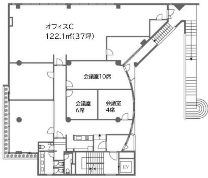 このエリアのデザイナーズセットアップオフィスで4名用・6名用・10名用の共用会議室が設置済み。執務室は20-30名前後でのご利用を想定。