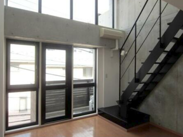 吹き抜けのメゾネットで大きな窓のため、採光もよく取れ、