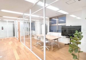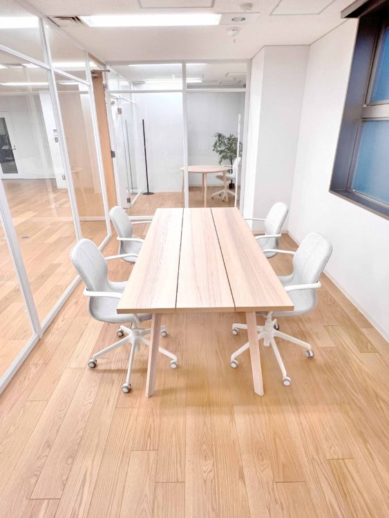 このエリアの居抜きオフィス、2名用・4名用の個室会議室が設置済み。