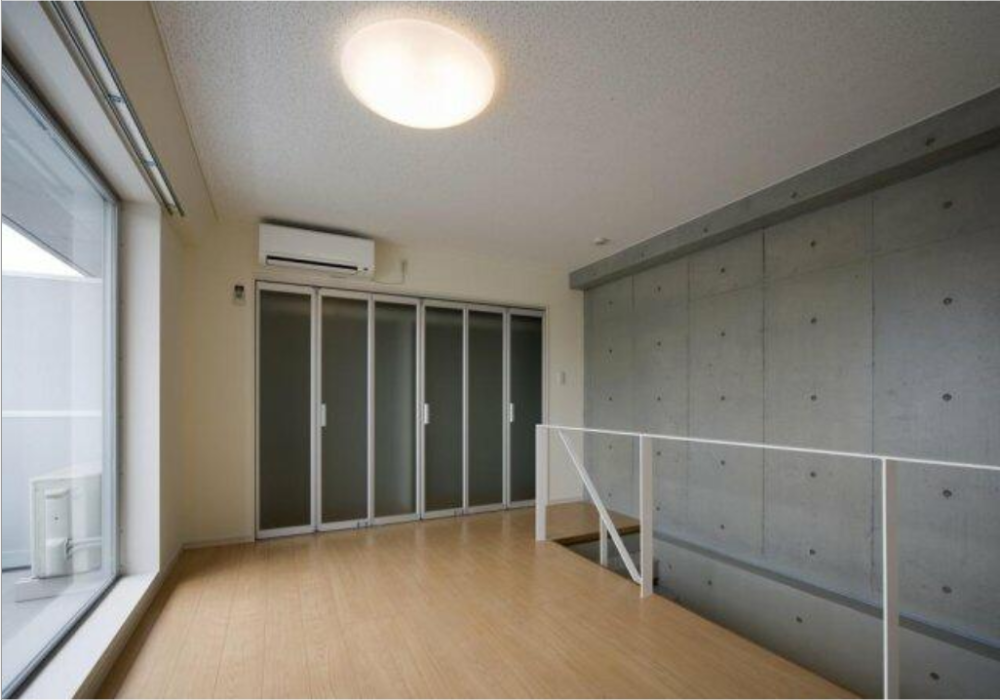 コンクリ打ちっぱなしとフローリング、ダウンライトの