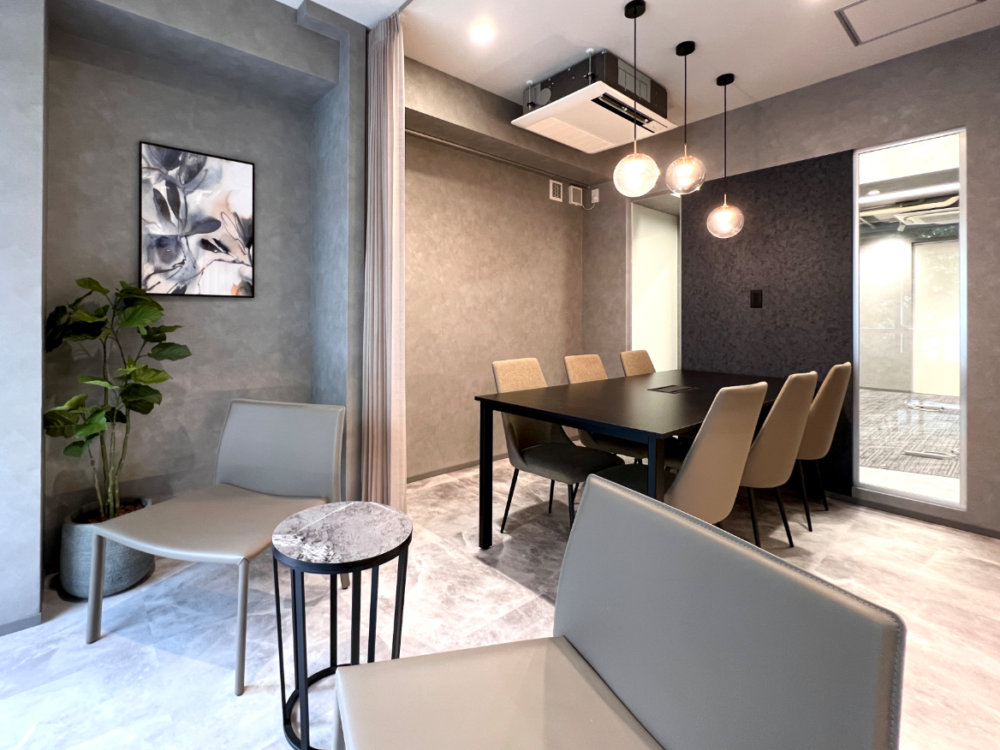 6名用の個室会議室が設置済み、執務室は10名前後でのご利用を想定。