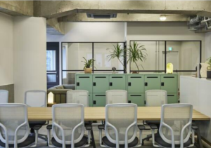 ミーティングスペースが2ヵ所設置済み。執務室は15-20名前後でのご利用を想定。