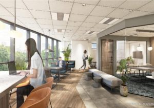このエリアのセットアップオフィスで4名用・8名用の個室会議室とフォンブース3室が設置済み。執務室は40名前後でのご利用を想定。