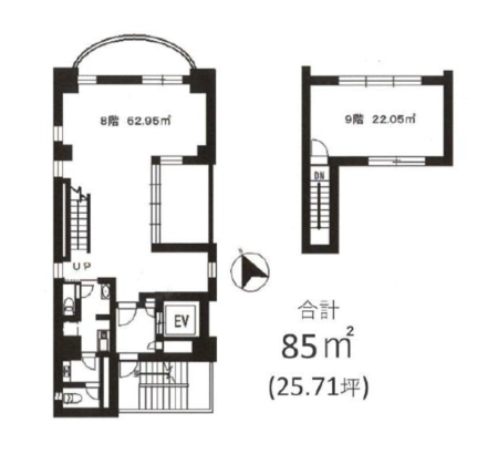 広尾エリア。トイレ男女別のメゾネットオフィス。