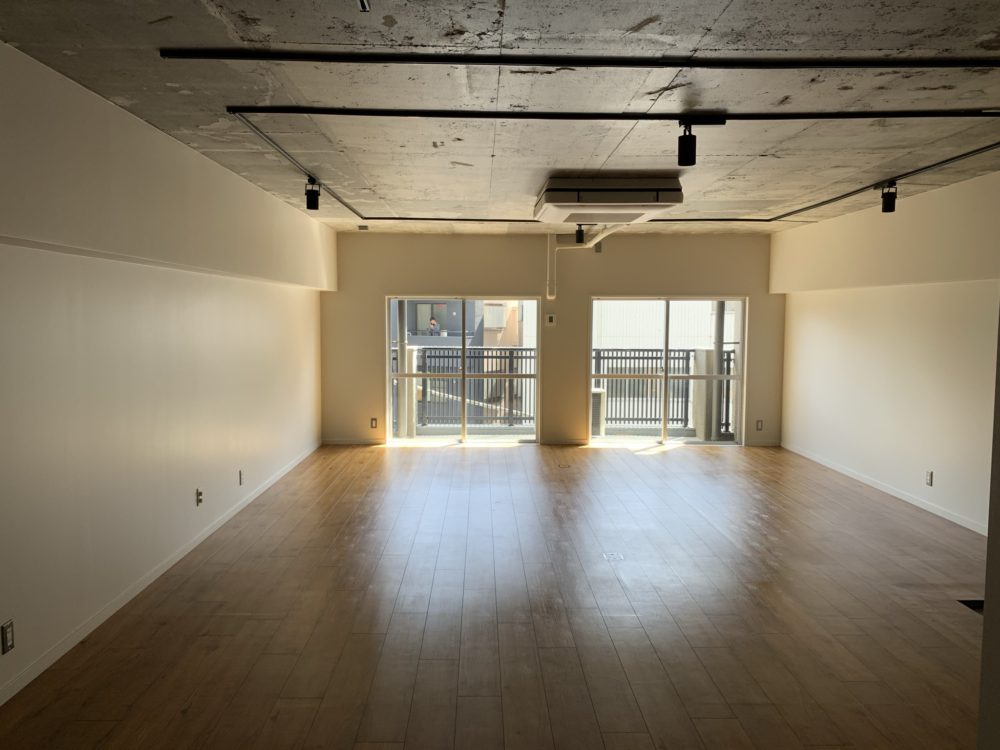 フローリングとスケルトンの天井、
