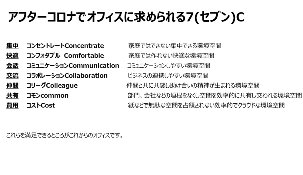 アフターコロナの無駄をそぎ取った、テレワークに対応したオフィスを、貸主の費用負担で構築。