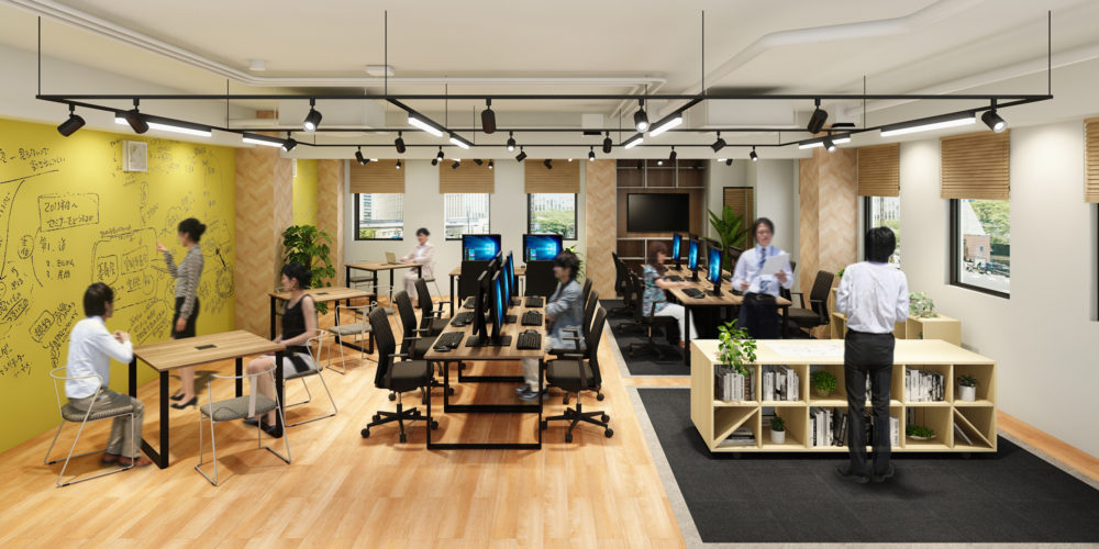 6名用会議室の間仕切りは可動式で登壇スペースとして利用可能