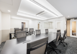 このエリアのセットアップオフィス個室会議室とラウンジスペースが設置済み。執務室スペースは12名前後でのご利用を想定。